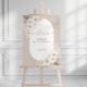 Celebrate the bride-to-be with this elegant bridal shower welcome sign featuring an oval shaped botanical frame with white watercolor flowers, palm leaves and dried foliage in white and neutral tones such as tan, beige and taupe. With elegant handwriting calligraphy.