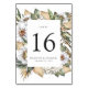 Elegant, tropical floral wedding table number cards featuring white watercolor flowers and lush foliage in rich green and brown earth tones. Personalize by adding the table number, your names, wedding date, etc. Design repeats on reverse side. Coordinates with our Boho White Floral & Greenery wedding invitation suite.