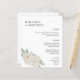 Rustic chic wedding menu with botanical accent featuring your names in elegant serif bold and a bouquet of white pristine roses in subtle palette of white ivory and sage gree. Personalize with your wedding dinner details beneath.