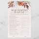 Add a touch of autumnal charm to your bridal shower with this customizable game. Featuring a beautiful floral design in warm fall tones, this game is perfect for a rustic or bohemian-themed celebration. Test your guests' knowledge of the bride-to-be with fun and engaging questions while enjoying the festive atmosphere. Customize the questions to fit your bride's personality and create a truly unique and memorable experience.