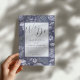 You will love this original watercolor artwork created for you special day. It features palms and ferns and pretty wild flowers in dusty purple colors, arranged in a pattern and laid over a dark purple background. The text is in dark grey on a pale lilac background. Easy to customize with your own information.