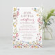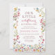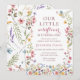 Celebrate your little girl's milestone with this enchanting "Our Little Wildflower Is Turning One" birthday invitation. This design features a delicate, hand-painted watercolor wildflower frame with vibrant blooms, greenery, and charming dragonflies and butterflies.