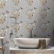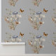 Dress up your room with this beautiful, elegant, yet modern boho butterfly wildflower floral wallpaper. Set on a grey background with yellow, cream and blue flowers and a monarch butterfly repeating.