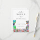 if you and your fiancée love dinosaurs then why not add a playful and unforgettable touch to your wedding preparations with this wildflower stylish Dinosaur-themed wedding RSVP reply enclosure card. Featuring colorful psychedelic T-Rex dinosaur bride and groom set in a vibrant prehistoric boho wildflower meadow, this card brings a unique and whimsical feel to your special day. Ideal for a spring or summer wedding with elegant modern script typography, both fun and easy to personalize, making it simple to match your wedding style. Hand painted spring and summer watercolor florals with colorful dinosaur bride and groom original artwork by artist Catherine Sweetman, the watercolor art showcases a charming blend of summer florals and dino-inspired love. Perfect for your wedding reception or rehearsal dinner, this RSVP card is part of a complete wedding suite that includes everything you’ll need to make your wedding journey as memorable as your love story.