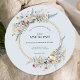 Boho Wildflower Fern Dusty Blue Wedding Round Save The Date