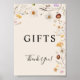 Gifts sign are characterized by a boho style with floral artwork and neutral earthy and beige colors.