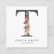 Boho Wildflower Initial T QR Code Square Business Card
