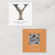 Boho Wildflower Initial Y QR Code Square Business Card