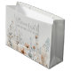 This simple and elegant design features boho wildflowers in pale pink, blush, blue and grays.