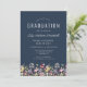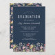 Boho Wildflower Pattern Navy Blue Graduation Party Invitation