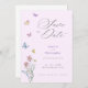 Celebrate your wildflower butterfly wedding with a Save the Date card that blends boho charm with modern elegance. Featuring watercolor florals in shades of purple and lilac, this design exudes rustic botanical beauty. With the simple yet striking script, it sets the tone for a day of love and joy.