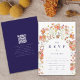 Elevate your navy blue and white wedding invitation suite with this Boho Fall Rustic Wildflower Arch Wedding RSVP Enclosure Card featuring a scannable QR code for easy online RSVP. Designed to complement a bohemian autumn wedding theme, this card showcases hand-painted watercolor florals in rich, seasonal hues including terracotta, cream, burnt orange, peach, soft pink, coral, yellow, purple, and burnt umber.