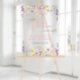 An elegant baby girl shower clear acrylic welcome sign featuring "a little wildflower is on her way" showcased in a mix of light grey typography and a stylish pink script, and boho-inspired whimsical watercolors of dainty purple, pink and yellow wildflowers. Add the name of the mother-to-be in simple pink lettering.