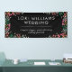 Black welcome banner for a business/company with modern fonts and colorful wildflowers in pink, violet, orange, and white.