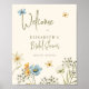 Watercolor wildflowers elegant rustic modern spring summer garden bridal shower welcome sign poster with pastel colorful flowers and butterflies on a cream ivory background.
