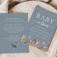 Boho Wildflowers Dusty Blue QR Code Baby Shower Invitation