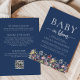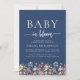 Boho Wildflowers Navy Blue QR Code Baby Shower Invitation