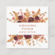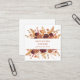 These boho square business cards feature a frame of autumn colored, neutral wildflowers in dark red and terracotta on a white background.