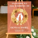 For the free-spirited couple, this neutral frosted acrylic sign features earthy winter florals and elegant script. A chic welcome for boho winter weddings.