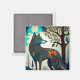 Boho Wolf Surreal Wildlife Art Button Magnet