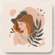 A boho influenced design with a beautiful woman and simple shapes, plant symbology, and stars.