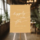The quote on your welcome wedding sign reads "welcome to our happily ever after". Customize it with the names of the couple and the date.