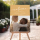 Customize your welcome wedding sign with a photo, the names of the couple and the date.