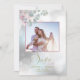 Rose Pink and Laurel Green Eucalyptus leaves - Your photo in front of a romantic dreamy bokeh champagne and silver background - while a branch of mint green and pale lilac eucalyptus leaves fall over a corner of your photo that sets off your photo beautifully - the background is a bokeh effect in champagne silver and pale dusty blue - - We have created an easy to use template featuring a handwritten calligraphy "Save the Date" that can easily have the color changed to fit your mood - text is gold and rose (which can easily be changed to fit your wedding theme by choosing customize further ), additional information offered on the back