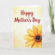 Designed with a soft, glowing background in pale cream and light yellow, this card feels like a gentle hug ❤️. A large flower with wide petals in golden yellow and warm orange sits slightly off to the lower right, as if leaning in close like a caring companion. Its petals spread outward toward a dark, textured center, edged with tiny golden dots that add a delicate, affectionate sparkle. In the upper left, the words “Happy Mother’s Day” appear in a flowing, cursive-style font, colored a warm crimson that stands out without feeling harsh. The layout creates a diagonal balance between the message and the flower, like a quiet exchange across the page. Soft, blurry light circles drift across the background, adding a dreamy glow that pairs well with the tender theme 🌼. The flower’s dark center is ringed with fine golden specks, and the light orbs fade gently into the creamy gradient behind it.