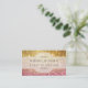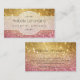COLOR PALETTE: golden metallic color, pink DESIGN COLLECTION: A matching business card to use for businesses that are feminine, elegant and need to project a beautiful, glamorous image. Simply punch a hole in the end and attach to your gift bags or favors with a matching ribbon (not provided). Designed to match the Ticket Stub Corner Style invite option, this design was created with gorgeous warm golden fading to blush pink and then bright pink shimmering, glitter look Bokeh image. Beautiful scroll calligraphy flourishes top and bottom set off your business name in a subtle round top and bottom frame. Modern and trendy, feminine glitzy bling style. Ideal for event planners, wedding coordinators, cosmetology, professional services and upscale fashion and interior design.