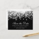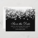 Save the Date postcard featuring white bokeh lights on your choice of background color.