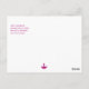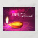 The greeting "Happy Diwali" overprints a pink background with bright orbs of light shining above a lit lamp to send warm wishes for Diwali. The reverse reveals a small pink lamp at the bottom while the message above is customizable or can be deleted in order to handwrite your own message. Available with matching products.