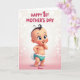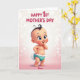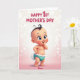 Designed with a sweet, animated infant at the center, this card shows a rosy-cheeked baby smiling with bright turquoise eyes and a tiny curl of dark hair. The background fades from soft pink into glowing white, sprinkled with blurred light dots that feel like a gentle celebration ❤️. One small hand lifts toward the chin, adding a tender, curious pose that feels like a little shared moment between loved ones. The baby wears a turquoise bottom piece trimmed with a row of white, shell-like frills, and stands on small, detailed feet near the lower portion of the design. Near the top, large magenta text sits centered and easy to spot, with a short greeting that balances the illustration. A smaller line of text appears near the bottom in a lighter tone, spaced neatly beneath the baby as a simple sign-off 🌼. The soft pink-to-white gradient fills the full background, with the brightest glow sitting just behind the baby’s head.