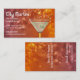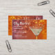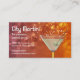 Bokeh imagery against an orange and cranberry background makes this business card for a martini bar or cocktail lounge stand out. A large cropped martini overlays the background and the bokeh imagery is repeated on the reverse. Available in alternate colors with matching products.