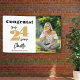 This graduation banner features the graduating year in big bold gold numbers and is paired with a handwriting style text. The design offers a vertical photo for your favorite senior picture. Say congrats to the class of 2024 graduate with this modern personalized photo banner.