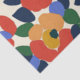A vibrant and bold abstract floral design featuring large red, orange, and blue flowers with green and navy leaves on a cream background. The playful shapes and bright colors create a modern, artistic aesthetic perfect for textiles, wallpapers, or decorative prints.