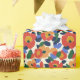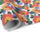 A vibrant and bold abstract floral design featuring large red, orange, and blue flowers with green and navy leaves on a cream background. The playful shapes and bright colors create a modern, artistic aesthetic perfect for textiles, wallpapers, or decorative prints.