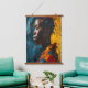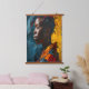 This AI-generated abstract portrait wood topped wall tapestry art print showcases a stunning fusion of vibrant expressionism and contemporary art. The bold brushstrokes and intricate color contrasts—rich blues, fiery yellows, and deep reds—create an emotive and striking depiction of a woman in profile. This piece exudes strength and individuality, making it a standout addition to modern home decor. The dynamic texture mimics traditional oil painting while embracing the limitless possibilities of digital art. This artwork celebrates cultural beauty and the power of expression through art, making it perfect for personalizing spaces with warmth and depth. A captivating centerpiece for living rooms, offices, art studios, or galleries, this unique creation also makes an excellent gift for art lovers, birthdays, housewarmings, and other special occasions.