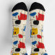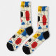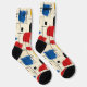 Unleash your artistic side with these bold abstract socks, showcasing dynamic brushstrokes in red, blue, yellow, and black on a cream background. The geometric grid pattern adds structure, creating a harmonious balance between creativity and order. Perfect for trendsetters and art lovers, these socks are a unique and stylish addition to any outfit.