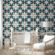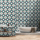Bold Abstract Teal and Peach Moroccan Tile Wallpaper