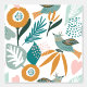 Bold Abstract Tropical Birds & Floral Pattern Wallpaper