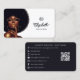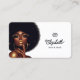 This chic business card features a powerful Melanin Chic Afro American woman with a stunning afro, accentuated by glamorous gold lipstick and nails. Perfect for hair and nail salons, this design effortlessly combines luxury and empowerment with sleek black and gold tones, making it ideal for salon professionals who want to leave a lasting impression. Elevate your brand with this sophisticated and eye-catching card that embodies beauty, strength, and style.