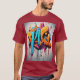 My 11 yo wore adult XL (5’7” 165#). The 8yo is small framed. She wore adult small and tied it in the back. Grandma wore adult large with long sleeve shirt underneath. Tall girl adult medium. Dark haired male adult large. Good quality dark Heather gray, Gildan brand shirt. -it was next up from basic choice and cost about $20 per shirt. Not too thick or thin. Washed and dried well, no major shrinkage. Not see-through. Can wear a bra under it fine. Screen print is just as shown and well done, front and back.