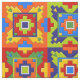 This fun fabric features a bold mosaic tile pattern in bright shades of reds, blues, greens and yellows.