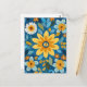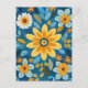 Large, stylized petals in golden yellow sit against cool cerulean in a sunny, coastal-inspired flat floral pattern.