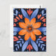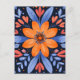 Clementine-orange petals shine atop vivid cobalt backdrops, forming modernist floral statements in bold contrast.