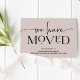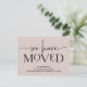 These seriously modern moving announcements feature elegant, ornamental black text on a neutral, rosy beige background color for a fresh new look that is still timeless and classy. A stylish way to let friends and family that you have moved to a new home!
