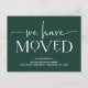 These seriously modern, emerald green moving announcements feature elegant, ornamental white text for a boho new look that is still stylish and classy. A stylish way to let friends and family that you have moved to a new home!