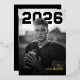 Make a powerful statement with this bold athletic graduation announcement design. The front features a striking black-and-white senior portrait paired with strong, graphic typography for a confident, modern look. The back showcases an additional photo alongside a heartfelt graduation message, creating a meaningful balance of personality and pride. Perfect for student athletes or graduates who want a timeless, editorial-style announcement that highlights both achievement and character. Fully customizable with name, school, photos, and message to create a keepsake family and friends will cherish.