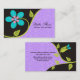 Bold big turquoise stylized flower business cards template. An elegant, impressive design, with a bold turquoise flower with green leaves on black and purple background. On the purple there is a damask pattern. Click on Customize it and choose from over 200 colors to change the background color (purple). Great for a florist, textiles or for a personal profile card.